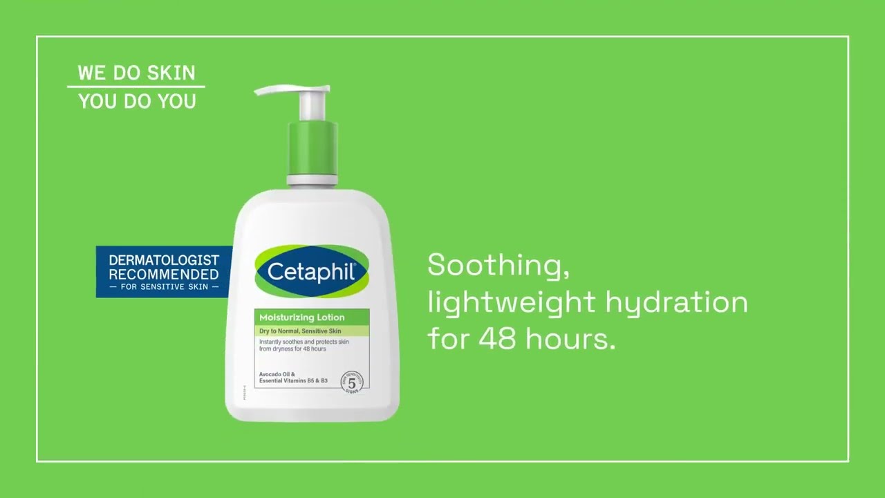 Aplica la Loción Humectante Cetaphil generosamente sobre la piel limpia del rostro o cuerpo con movimientos circulares suaves. Su fórmula ligera y de rápida absorción, enriquecida con Niacinamida, Pantenol y aceite de aguacate, calma la piel al instante y proporciona una hidratación duradera de hasta 48 horas, restaurando la barrera natural de humedad en solo una semana.